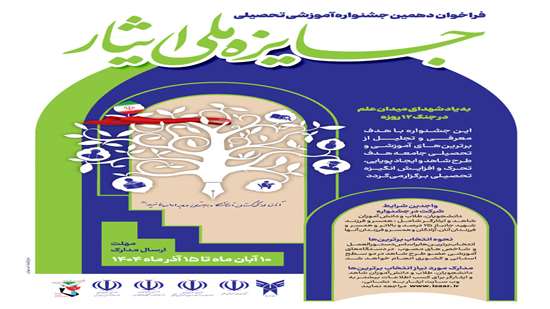دهمین جشنواره آموزشی- تحصیلی جایزه ملی ایثار مخصوص دانشجویان شاهد و ایثارگر (همسر و فرزند شهید، جانبازان و فرزند آزاده و جانباز 25 درصد به بالا)